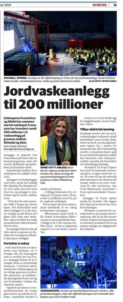 Første desember fill Frano tillatelse fra Statsforvalteren til å sette i gang jordvaskeanlegget de har søk om på Bånkall.